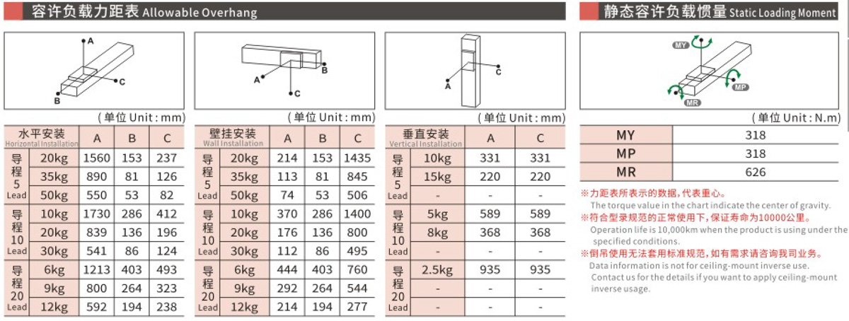 容许负载力距表
